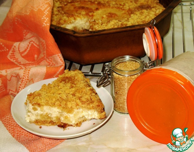 5. Творожно-фруктовый пирог https://www.povarenok.ru/recipes/show/95511/ от Юлечки (Юлия1211). Очень-очень вкусный пирожок!!! Мне он показался похожим чем-то на королевскую ватрушку...Вместо яблок в начинку положила ананасы консервированные и сверху посыпала, от души, коричневым сахарком. Разрезала его еще горячим, поэтому получился такой неровный кусочек на фото... Но пирожок очень быстро улетел с нашего стола, не дав возможности переделать снимок.