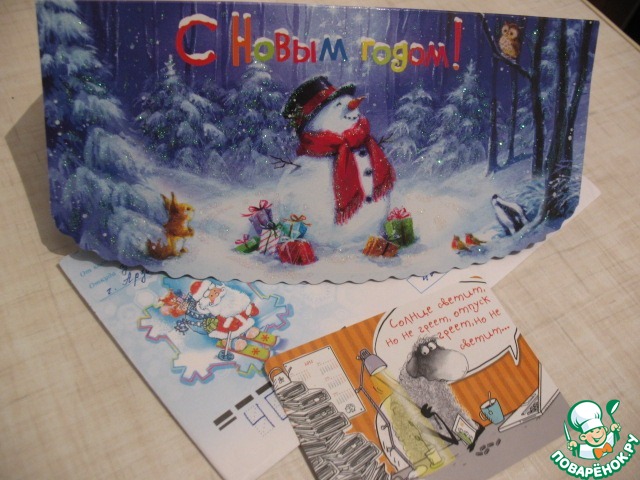 А вот та веселая открыточка и прикольный календарик, которые подарили мне праздничное настроение!