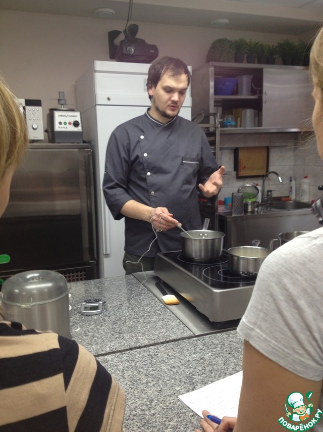 Александр раздал нам задания -часть из нас смешивала ингредиенты для меренги, часть - для начинок. Затем показалывал что и как делается, а дальше мы все делали сами под его руководством.