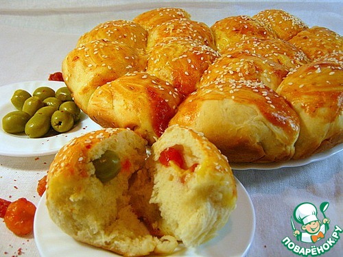 Нежнейшее пуховое тесто, маслины, сыр, вяленные помидорки, кунжут - этот хлеб настолько вкусен, что пришлось собрать всю силу воли, чб не съесть все самой. Единственное, в следущий раз сыр порежу более крупно, мне его немного не хватило.