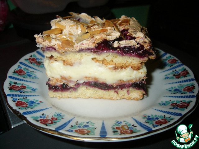 "Пляцок "Пани Валевская"по рецепту natapit https://www.povarenok.ru/recipes/show/77171/ -понравилось всё-сочетание кислинки,которую придаёт смородина,со сладким кремом,замечатеьное тесто и безе-очень вкусно!!!