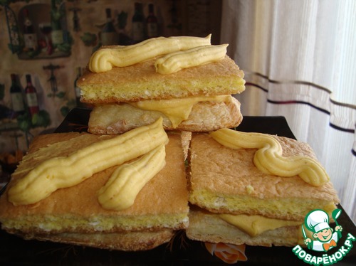Бисквитно-слоеное пирожное https://www.povarenok.ru/recipes/show/100455/ от Нины "Nienulka". Очень понравилось сочетание бисквитного и слоеного теста, да еще и с кремомммм!!! Вы не поверите, такие вкусненькие пирожные получились...!!!