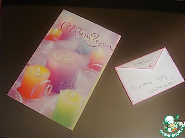Совершенно замечательная открытка с добрыми и теплыми поздравлениями от милой,доброй и такой внимательной Леночки Первушиной. И интересное гадание.Как раз при встрече Старого Нового года,мы и погадали.Год должен быть замечательным для нас всех!