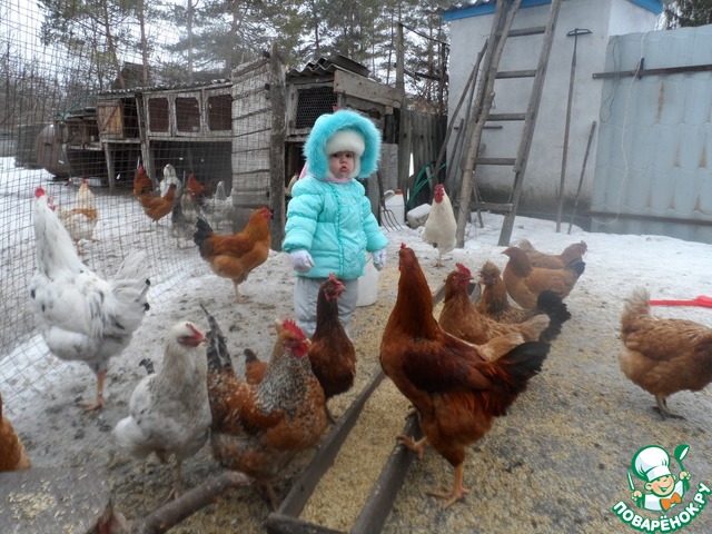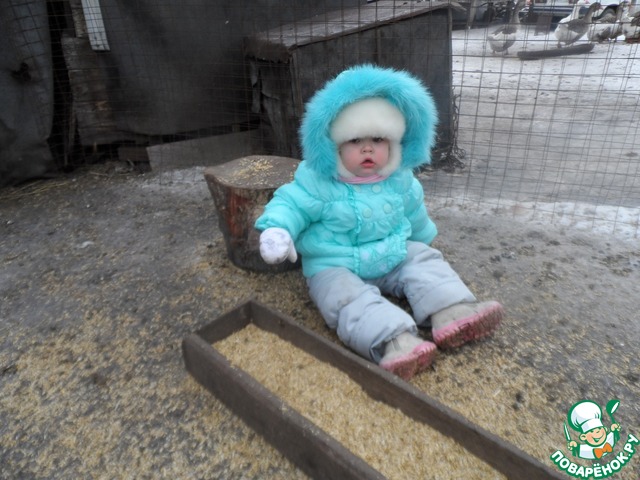 Ну а это моя прекрасная дочка, которая ну просто обожает всю деревенскую живность и очень любит помогать дедушке.