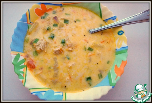 Сырный суп в мультиварке от Ларисы лялич . Я делала с куриной грудкой.Очень вкусно и быстро!
