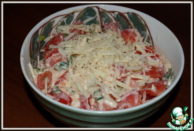 Салат с помидорами и сыром от Лены чиполинка.Классическое сочетание,беспроигрышное на мой взгляд.