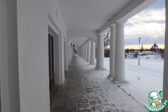 Колоннада Торговых рядов с видом на жемчужину Суздаля Кремль!