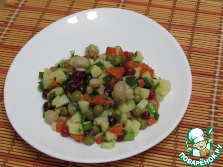 Знаю его под другим названием «Салат таёжный», но это не важно, важно, что полюбился он нам своей вкусовой гаммой – клюква придает кислинку и заменяет соленые огурчики, ингредиенты доступны и приготовление не занимает много времени. Хорошая альтернатива винегрету. Оксане спасибо!