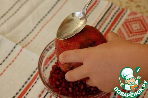 Совет: желательно, чтобы посуда была с высокими стенками – на случай, если гранат сочный и будет брызгать. Фартук тоже не помешает.