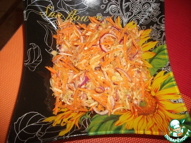 Получился вкусный и необычный салатик. Остренький, ароматный и очень привлекательный!
