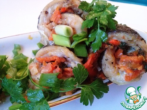Вкусно как в горячем, так и в холодном виде. Скумбрия закончилась. Готовила из пеленгаса. Из приправ, перец душистый и семена фенхеля. Кожу пеленгаса зубочисткой не смогла проколоть, запекала без, просто потуже скручивая.