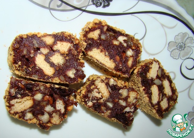 Пригодился рецепт сразу после Пасхи, когда было много сладостей и много "лома печенья". Орехи добавила разные (грецкие, фундук и миндаль), обваляла колбаски в крошке от медовика (можно еще в какао, крошке ореховой, от печенья, кокосовой стружке).