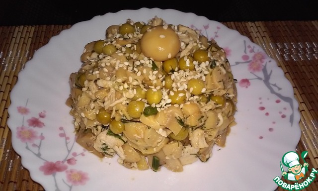 Салат "Курица на горошине" от Ирины (dog-rose). Замечательный салатик. Прост и доступен в приготовлении.