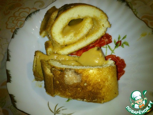 его я пекла 4 дня подряд . при этом с вареньем мне не понравилось- рулет впитал варенье. стал мокрый и.. короче, две вкусных продукта- клубничное варенье с вкусным рулетным бисквитом не подружились у меня. зато с кремом от Людочки выходило отлично.