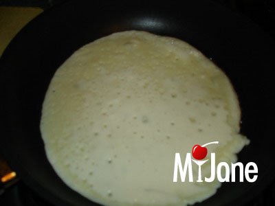 Тесто выливать тонким слоем на раскаленную сковороду, смазанную растительным маслом. Обжаривать с двух сторон до золотистого цвета.