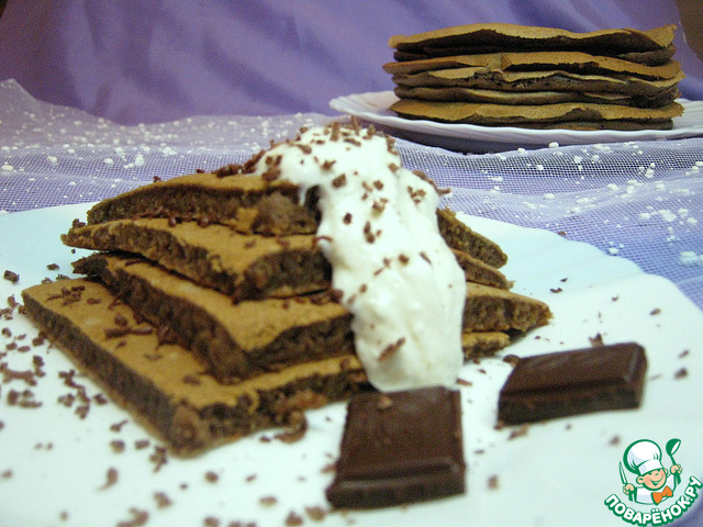 По просьбе моих сладкоежек пекла их потолще, как панкейки. Шоколадно-кофейный аромат, нежная структура, шикарный крем - это просто блаженство.Наслаждалась каждым кусочком ..