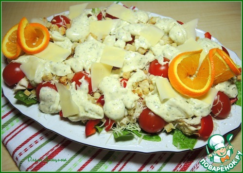 Салат очень вкусный! Курица приобрела в процессе запекания приятную цитрусовую нотку и в сочетании с хрустящим салатом и овощами была изумительна!!! Дети мои такой салат поглощают с не меньшим удовольствием, чем сладости!