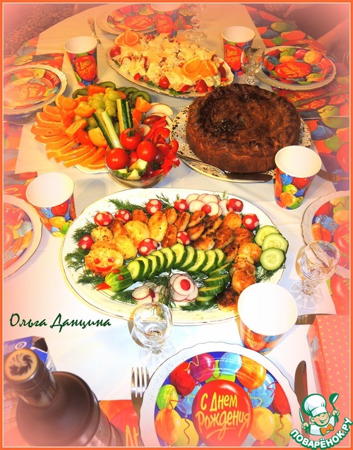 В середине этой недели у моего младшенького был первый юбилей, ему исполнилось аж 5 лет!!! Он с нетерпением ждал своего праздника, подарков и внимания! На сбор друзей он еще пока не готов и так как это был будний день, мы в своем узком семейном кругу отметили это важное событие. Весь предыдущий вечер я надувала шарики и украшала зал, чтобы утром создать ребенку праздничное настроение. А после того, как он отправился в детский сад принимать поздравления от своих одногрупников и воспитателей и угощать их сладостями, я приготовила разные вкусности для ужина. Делюсь с вами тем, что было у нас на столе и еще добавлю несколько блюд, которые я готовила на неделе.