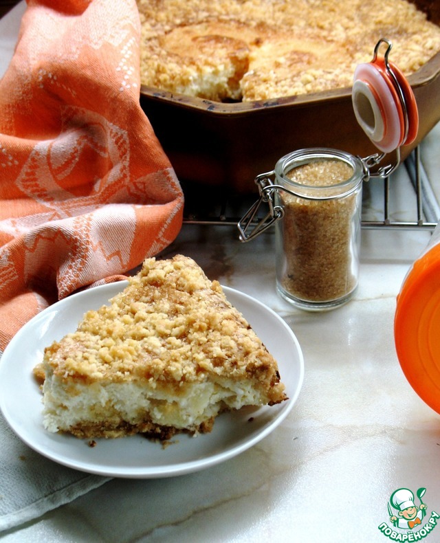 4. Творожно-фруктовый пирог от Юлечки(Юлия1211) https://www.povarenok.ru/recipes/show/95511/. Частенько пеку Юлины пироги, вот и в этот раз приготовила очередной. Очень-очень вкусный!!! Мне он показался, похожим чем-то на королевскую ватрушку...Вместо яблок в начинку положила ананасы консервированные и сверху посыпала от души коричневым сахарком. Разрезала его еще горячим, поэтому получился такой неровный кусочек на фото... Но пирожок очень быстро улетел с нашего стола, не дав возможности переделать фото. Спасибо большое от всех дегустаторов - было замечательно вкусно!!!!