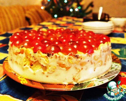 7. Торт "Виноградинка" от поваренка Игруша https://www.povarenok.ru/recipes/show/32478/. Этот тортик у нас стал Новогодним, т.к. несколько раз делала его на Новый год. Вкусный, легонький и неприторный фруктовый тортик! Правда в первый раз, не обошлось без моих недочетов-надо было постелить на дно разъемной формы бумагу, т.к. он у меня протек немного, и фруктовое желе (лимонное) я, видимо, очень быстро налила, и оно все куда-то делось-или стекло вниз или впиталось(((На вкусе это не отразилось, виноградинки держались хорошо. И еще, печенье(мелкий крекер-рыбки) я ломать не стала, побоялась что раскиснет, и оно все равно замечательно пропиталось!!!