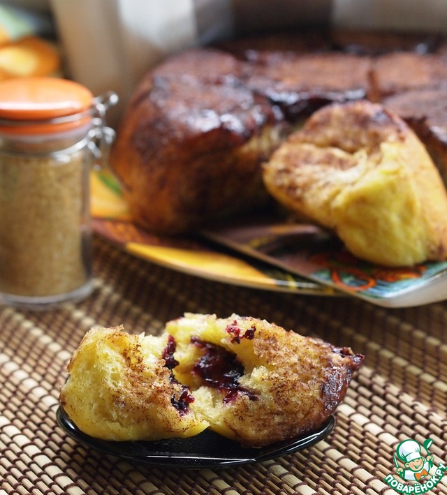 2. Тыквенный обезьяний хлеб в мультиварке от Наташи(Ната 69) https://www.povarenok.ru/recipes/show/94762/. Мы были в эйфории от этого хлеба!! Семейство мне так и не поверило, что там есть тыква!! Ну и ладно, что не поверили! Вкуснота была необыкновенная.....Для начинки брала черную смородину, протертую с сахаром, отцеженную от сока. Её кислинка очень приятно оттенила сладковатый вкус хлеба, а уж про корично-сахарную карамельную корочку сверху...я вообще-МОЛЧУ....За эти карамельные кусочки за столом была драка !!