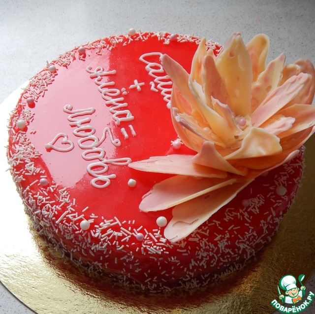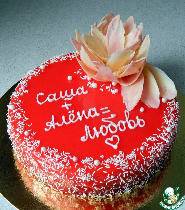 ) ! Иннуль, отчет исключительно посвящен тебе и твоим прекрасным рецептам!!! Глазурь красная. https://www.povarenok.ru/recipes/show/69902/ Я поняла, как её залить на бока!!! Я потом пожалела очень-очень, что на торт посадила шоколадный цветок - это было зеркало!!! Ровное, гладкое!!! А я его закрыла...