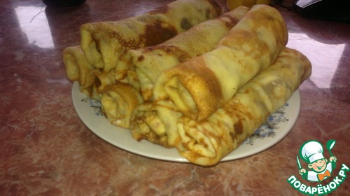 Закусочные солёные блины по рецепту https://www.povarenok.ru/recipes/show/52400/#dopphotos] "Блины в бутылке".