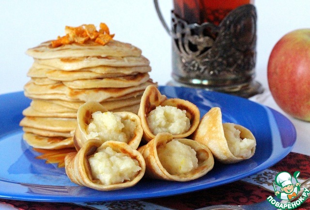 5- Оладушки с соусом из яблок и маскарпоне . Тоже отличная фотография. только резкости маловато чутка.