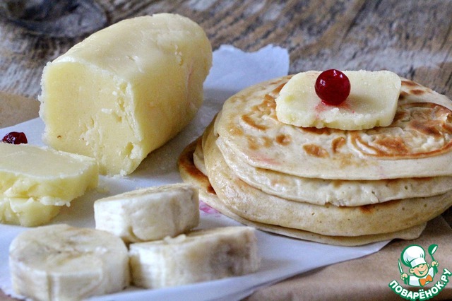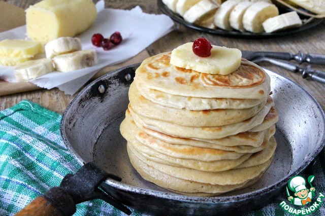 3. Крупный план, - но масло и бананы получились крупнее оладьев, и немножко затмили главных героев снимка. И еще я не поняла, почему создалось ощущение, что на заднем плане фон загибается вверх