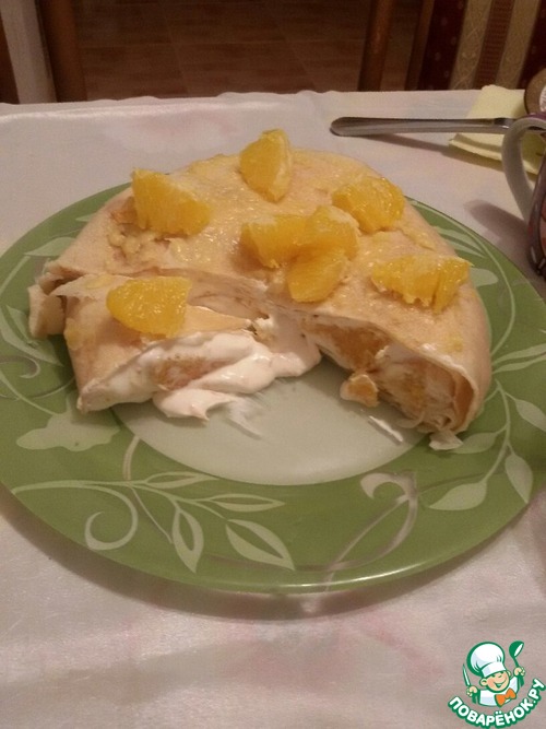 5. И тут барабанная дробь-мы подходим к финалу, самым сладким блюдом был "Апельсиновый блинный торт". Он произвел наибольший фурор
