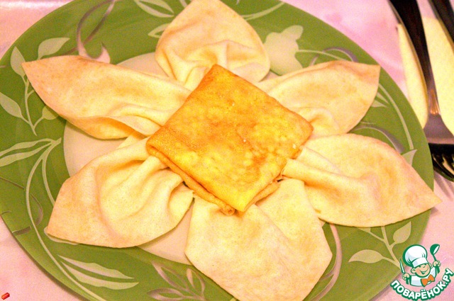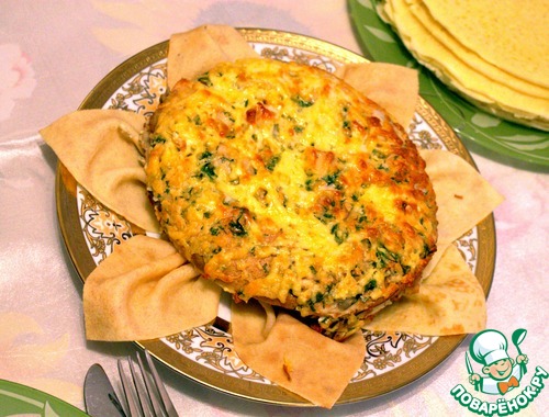 1. В качестве закуски я поставила блинчики с начинкой от IrikF "Любимый салат в блинах".