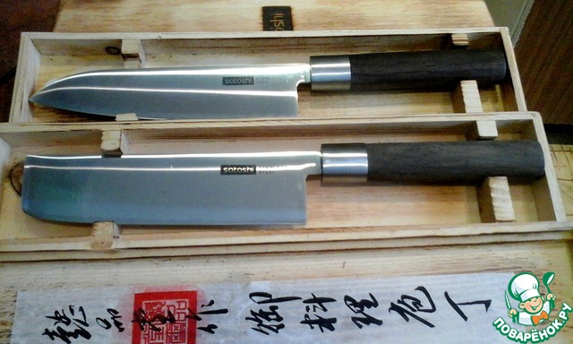 Японские ножи Satoshi. Шеф-нож Сантоку и топорик Накири.