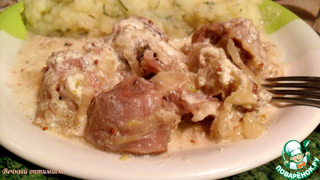 Нежная и сочная Говядина в луковом соусе от поваренка Пани Лена . Очень понравилась заправка из сметаны и горчицы к ним. И само собой лук!