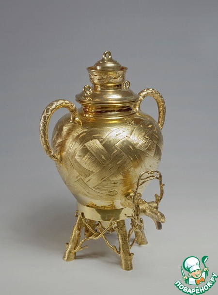 Самовар. Серебро, слоновая кость, чеканка, литье, золочение.