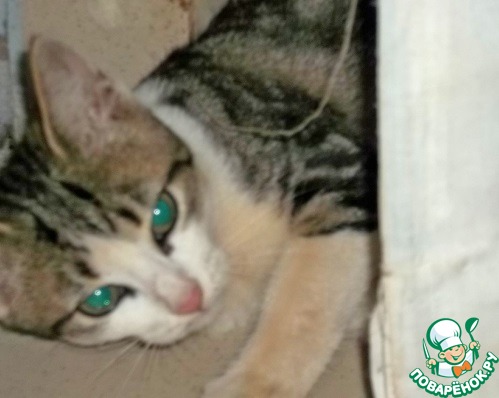 И вот это чудовище принесло нам на даче котёнка...маленького,серенького,еле глазки открывшего..