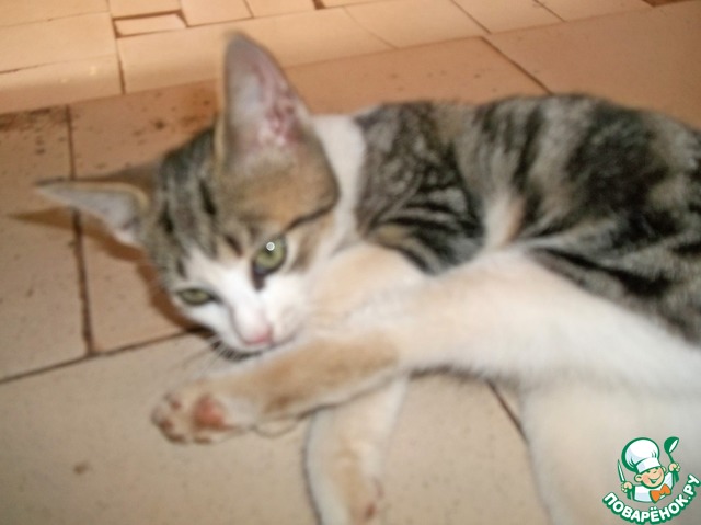 И вот это чудовище принесло нам на даче котёнка...маленького,серенького,еле глазки открывшего..