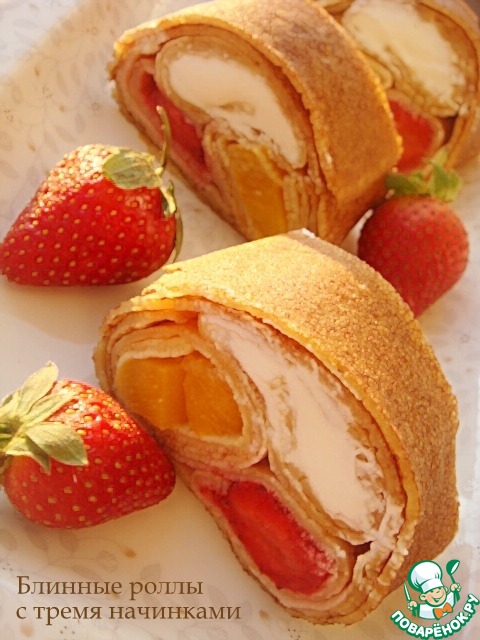 Блинные роллы с тремя начинками по рецепту Марии LapSha Maria - удивительное сочетание трех начинок,ароматных и очень нежных!Это - такое наслаждение вкусов!
