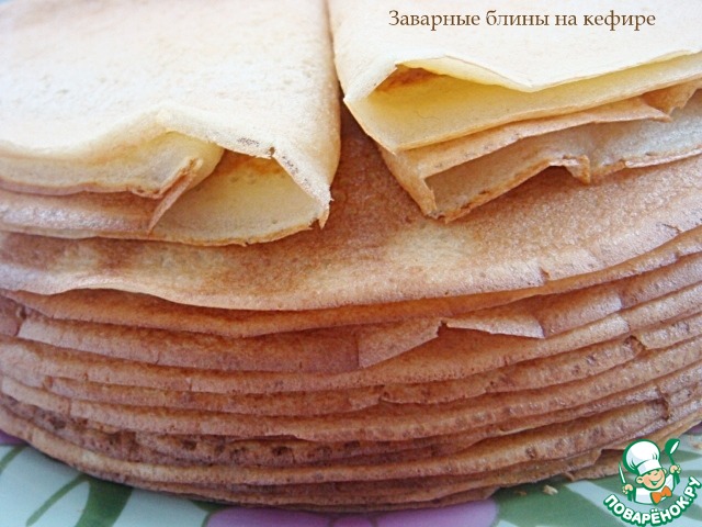 Заварные блинчики на кефире,автор Мама М-и А-,готовятся очень быстро,получаются такими вкусными,нежными и эластичными.