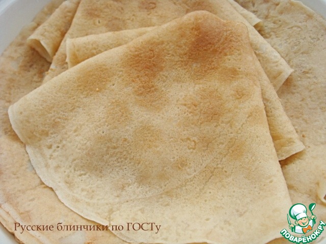 Русские блинчики по ГОСТу по рецепту Светочки s-v-e-t-l-i-k - это что-то необыкновенное,такой приятной текстуры,не передать словами,и очень-очень вкусные.