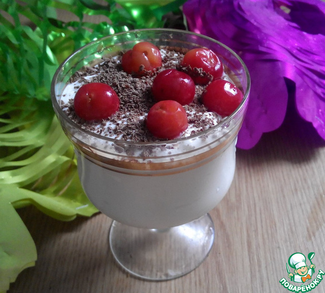Творожный десерт с шоколадом и черешней