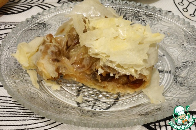 Хрустящий пирог с яблоками, корицей, изюмом и орехами https://www.povarenok.ru/recipes/show/86714/