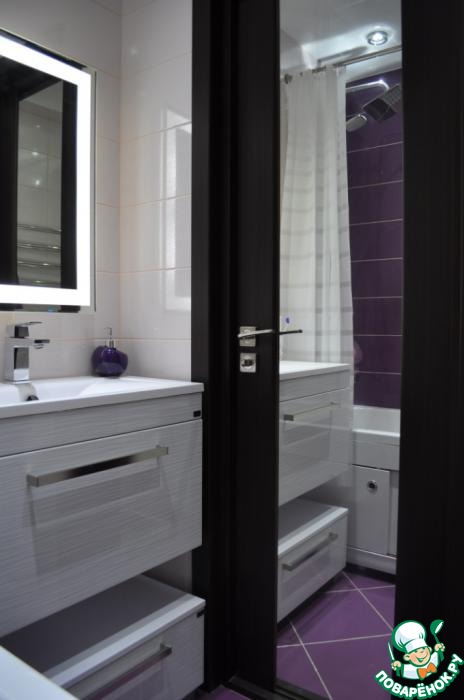 И еще из сан. узла тех же людей, прекрасная идея - дверь в ванной с зеркалом.