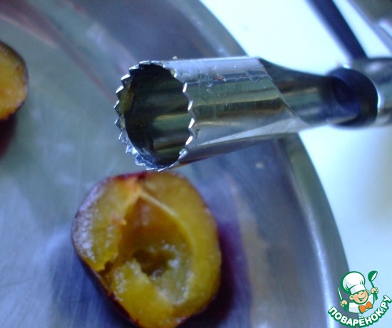 Для отделения косточек от слив использую обычный нож И! Не плохо получается использовать прибор для вырезания сердцевины у яблок и ананаса...ну, если у кого его нет...