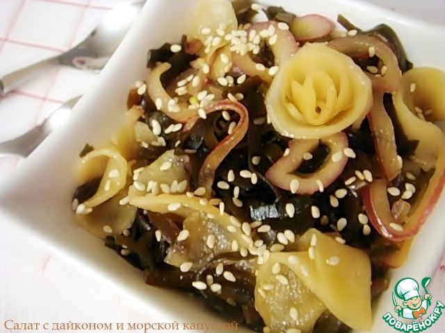 Очень интересный и вкусный Салат с дайконом и морской капустой по рецепту Оленьки Демурия.