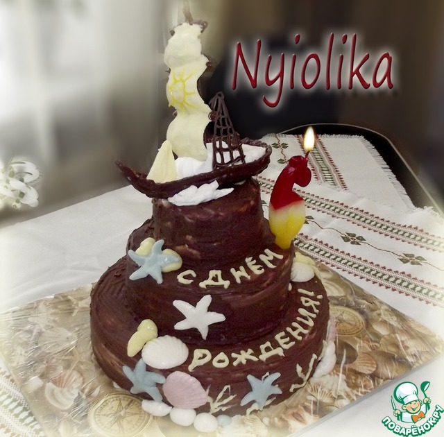 Вот такой торт получилось создать к самому главному для меня празднику - дню рождения любимого сына Парусник из шоколада: и сама лодка и паруса - был съеден именинником почти сразу же что невероятно приятно...