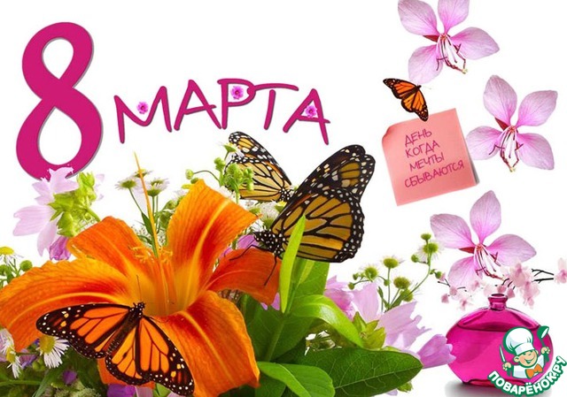 А потом мы сидели с родителями и пили чай с приготовленным мной на Поваренке пирогом. К сожалению он съелся так быстро, что сфотографировать я его не успела. Могу только дать ссылку на его собрата https://www.povarenok.ru/recipes/show/52918/. А сегодня - 8 Марта. От поздравлений у меня с утра разрывается телефон и я хочу всех милых дам поздравить с этим шикарным праздником. Любите себя, радуйтесь мелочам и все сложится идеально