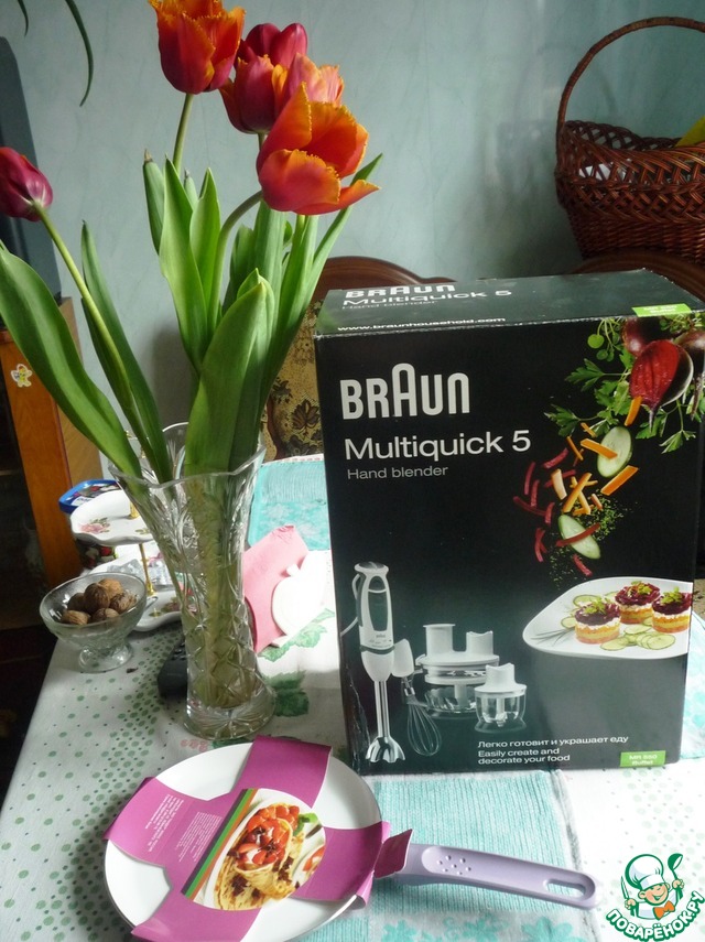 А это мне родители подарили: блендер с кучей насадок и сковородка для блинов. То, что я хотела