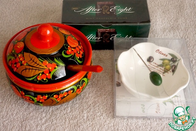Красивая расписная плошка, тарелочка для оливок, вкуснючий шоколад с мятной начинкой