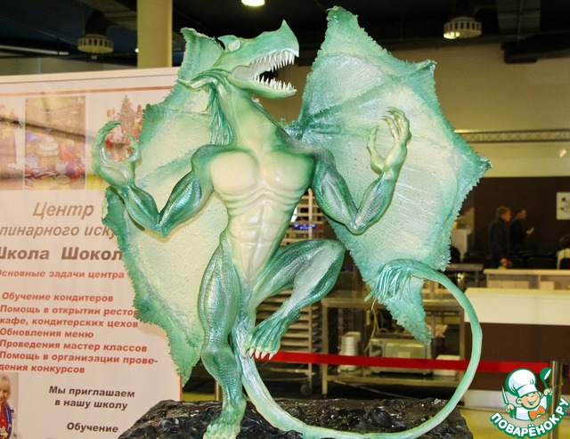 Итак, первое, что мы увидели, войдя на выставку, это огромное количество шоколадных скульптур от Школы Шоколада, привезенные со всей России.