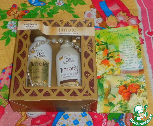 Шампунь и ополаскиватель для волос, в этой же коробочке находится очень красивый ободок для волос, это как раз то, что нужно каждой девушке